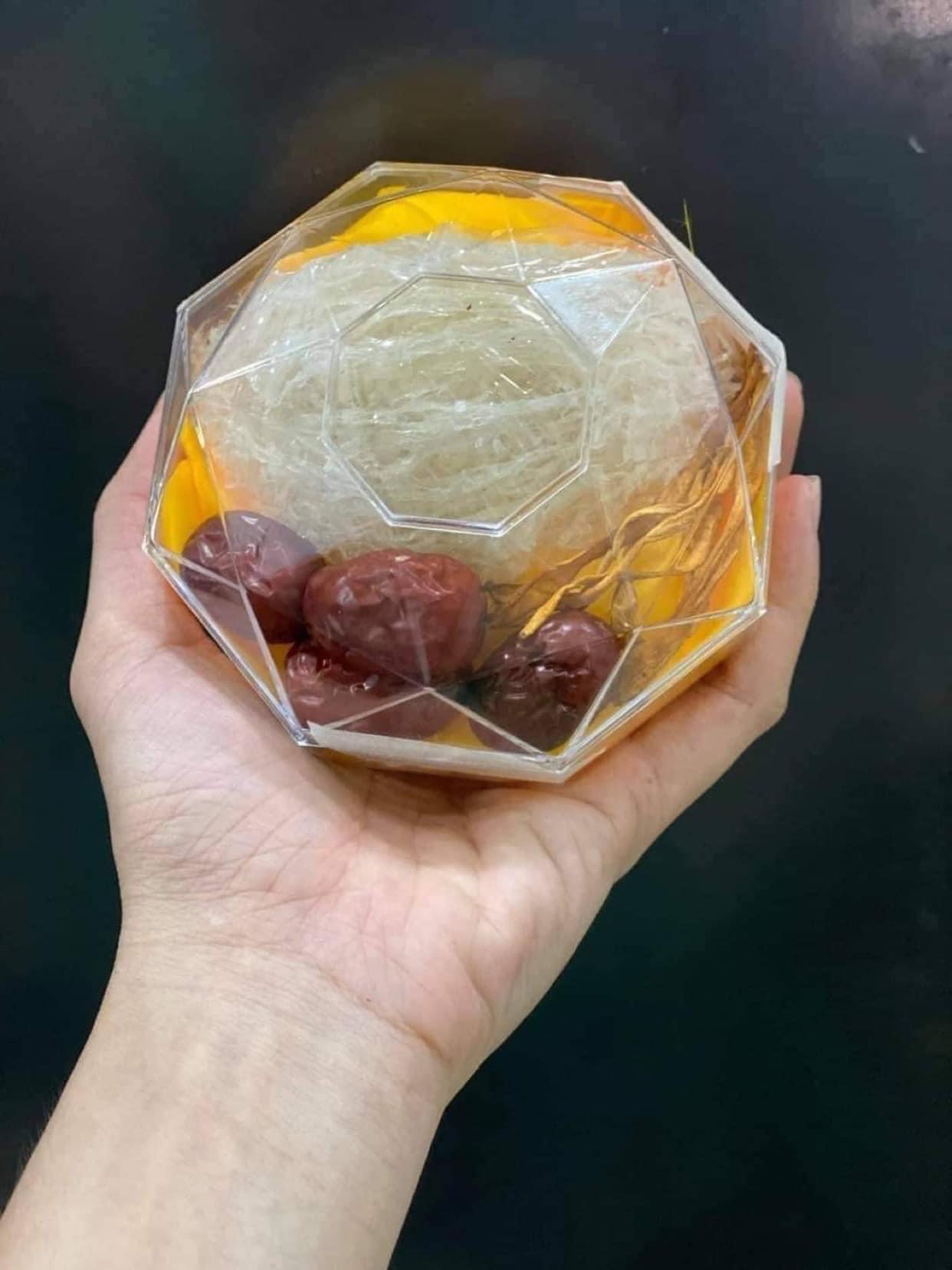 Trang chủSản phẩmHỘP NHỰA KIM CƯƠNG YẾN SÀO HỘP NHỰA KIM CƯƠNG YẾN SÀO Liên hệ Mô tả: Hộp mica cao cấp hình dạng kim cương, dùng để đựng yến thô hoặc yến tinh chế Quy cách: - Lớn: Kích thước đường kính 15cm, cao 9.5cm tính luôn nắp. Đựng được 100g yến thô-50g tinh chế.(120 hộp/thùng) - Trung: Kích thước đường kính 12.5cm, cao 7.5cm tính luôn nắp. Đựng được 50g yến thô-30g tinh chế. (210 hộp/thùng) - Nhỏ: Kích thước đường kín Cách sử dụng: ĐỰNG YẾN TINH CHẾ HOẶC YẾN THÔ Bảo quản: Bảo quản nơi khô ráo, tránh nơi ẩm ướt và ánh sáng trực tiếp Số lượng cần mua: Mời mua hàng Giao hàng trong 24h Đặt hàng nhanh Chọn và đặt hàng ngay Thông tin sản phẩm Xem thêm thông tin Sản phẩm liên quan